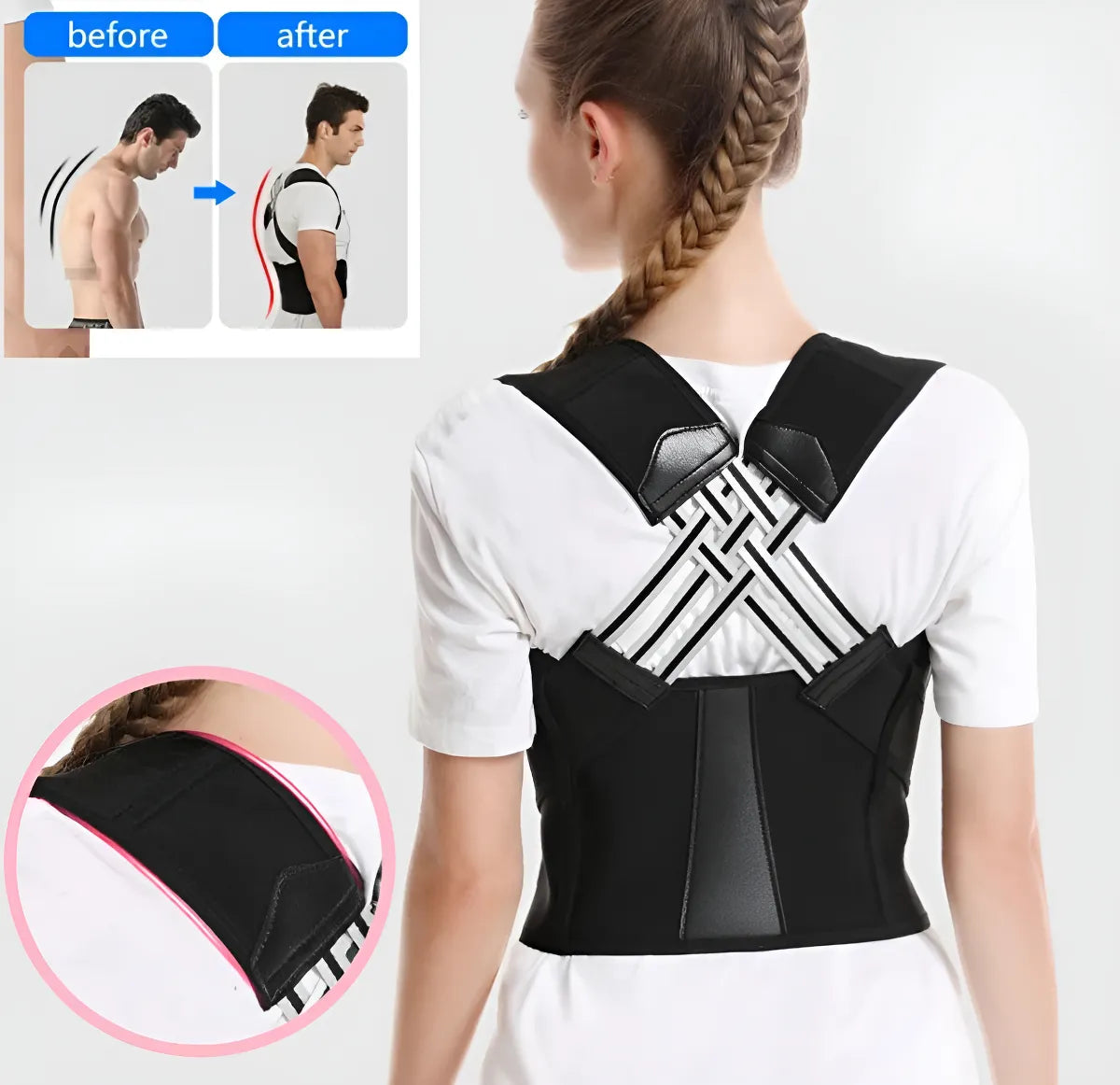 🎯 3 puntos de soporte que corrigen la curvatura y enderezan el torso.